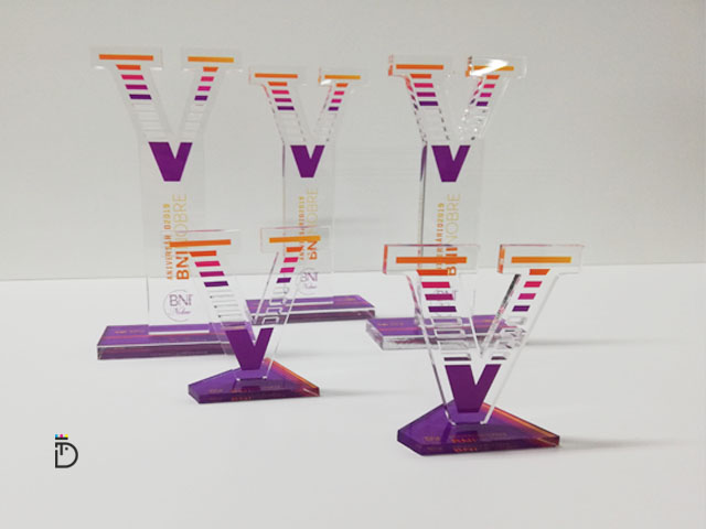 Troféus Personalizados: Feitos em vidro, acrílico, metal ou madeira, com designs exclusivos para refletir a identidade do evento.